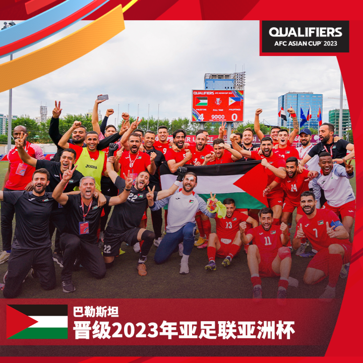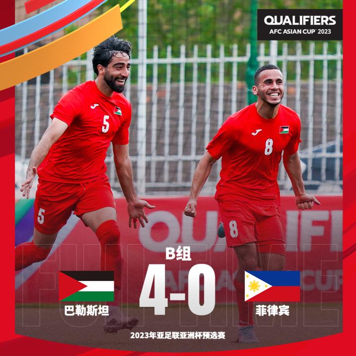 祝贺巴勒斯坦晋级#亚洲杯2023# !刚刚结束的...亚足联2022-06-14 16:38祝贺巴勒斯坦晋级#亚洲杯2023# ! 刚刚结束的亚洲杯预选赛最终阶段B组中,巴勒斯坦4-0轻取菲律宾。球队多点开花,萨利赫-奇哈德、塔梅尔-赛亚姆等四名球员取得进球。 小组三战全胜,打进10球并全部零封对手,巴勒斯坦率先锁定小组头名,连续第三次晋级亚洲杯正赛!展开更多