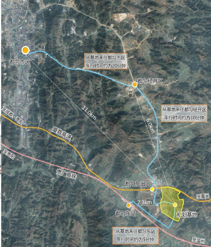 基地位于贵州省黔南州都匀市,是云、贵、川、渝通往两广、两湖和华东地区的黄金通道,交通便利。