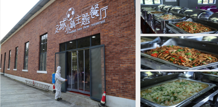足球小镇1号餐厅可一次性容纳400余人就餐,主打川菜,黔南菜,倡导纯天然、绿色健康。