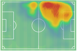 这张热图显示了莱奥本赛季在球场上的平均站位。从位置上你可以看到他的进攻威胁是如何贯穿整个球场左侧的。
