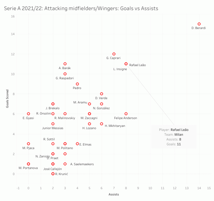 当我们整理数据时,我们决定把重点放在皮奥利的4-2-3-1对莱奥位置上踢球的球员的要求,即进球和助攻。