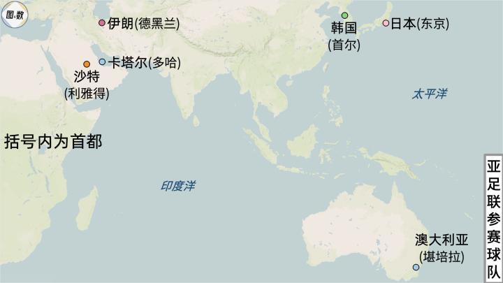 西亚有3支参赛球队,伊朗、沙特阿拉伯王国以及主办国卡塔尔。