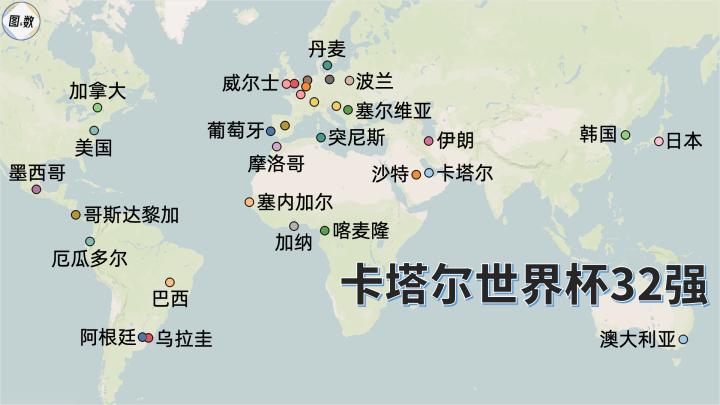 朋友们好,我是图述数说,一个喜欢做地图的小微UP主。随着哥斯达黎加在洲际附加赛淘汰新西兰,2022卡塔尔世界杯的32支参赛球队全部确定,他们都来自哪里呢?分布有什么特点吗?