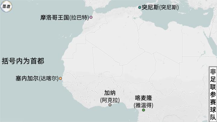 北非有两个参赛国,一个是“足球很纯粹”的摩洛哥王国,他们的最大城市卡萨布兰卡要比首都拉巴特更有名;另一个则是突尼斯,他们的首都也叫突尼斯,这其实是翻译的问题,因为在法语和英语中使用的是两个不同的词语,突尼西亚指代国家(Tunisie/Tunisia),突尼斯指代首都(Tunis)。