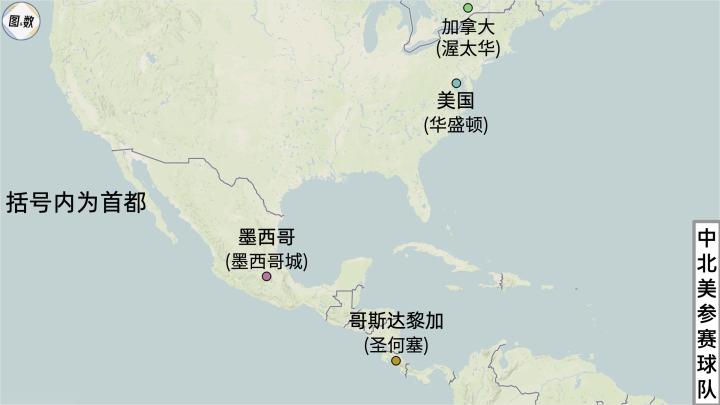 北美与南美一样,也是有4支参赛球队,最北面的加拿大是第2次参加,上次是在1986年的墨西哥世界杯。由于下届世界杯由美国、墨西哥和加拿大联合承办,这三个国家都将获得连续参赛的机会。
