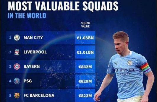 高达10.3亿欧元,当之无愧的足坛身价最高俱乐部