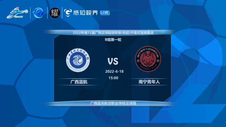 6月18日15:00,广西蓝天航空职业学院体育场,桂超揭幕战,广西蓝航VS南宁青年人