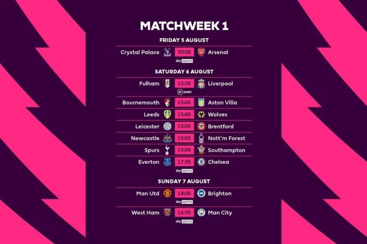 英超新赛季赛程:揭幕战水晶宫战枪手,第三轮上演双红会