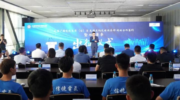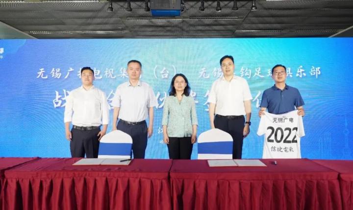 6月16日下午,无锡吴钩足球俱乐部在无锡广电传媒中心举行了无锡广播电视集团(台)与无锡吴钩足球俱乐部战略合作签约暨无锡吴钩2022赛季出征仪式。