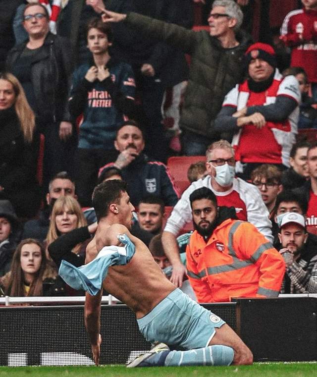 随后,罗德里在近三个月后,在我们最终夺冠的道路上创造了另一个决定性的时刻,因为曼城在2022年对阵阿森纳迎来了一个关键的新年战役。