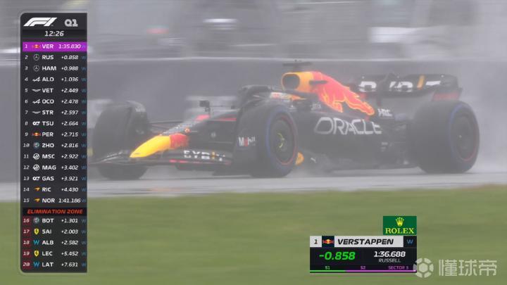 北京时间4:43分Q2重启,雨势渐停,选手们不断进行飞驰圈,随后维斯塔潘三段刷紫来到第一位,周冠宇最后时刻冲上前列,最终在Q2排名第7,F1生涯首次晋级Q3!被淘汰的车手则有博塔斯、阿尔本、佩雷兹、诺里斯和勒克莱尔。