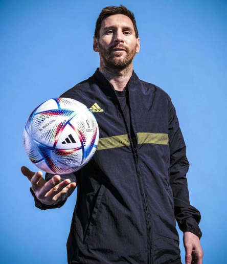 (图)梅西展示世界杯用球“Al Rihla“,中文名“旅程”