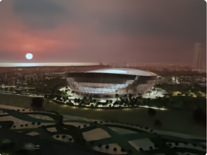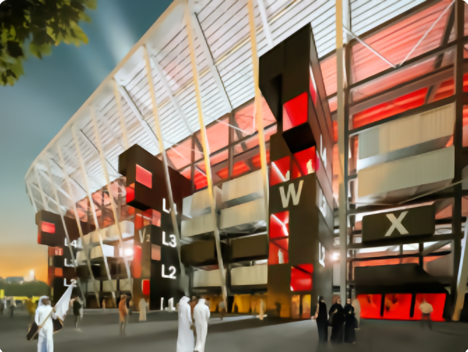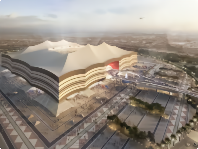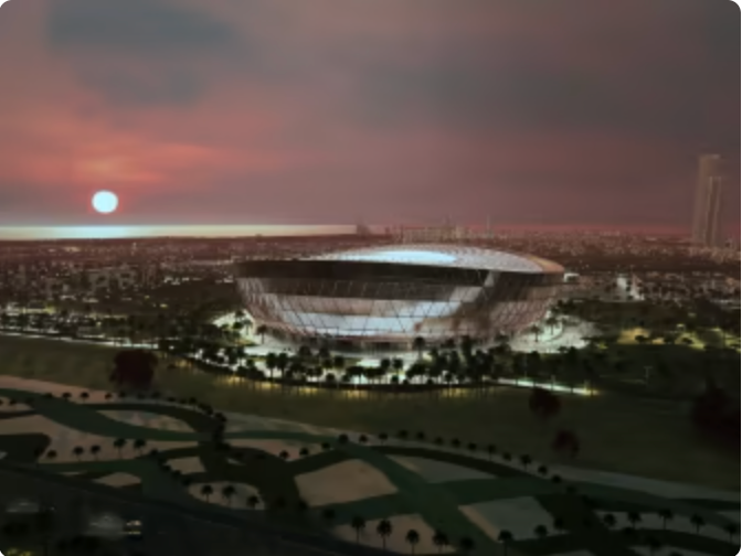 位于多哈之北15公里,可容纳80000名观众,这里将举办决赛和闭幕式,共10场比赛。作为世界杯最大场馆,卢塞尔球场是世界上同类型索网体系中跨度最大、悬挑距离最大的索网屋面单体建筑,场馆由Foster Partners设计,借鉴了阿拉伯建筑,以伊斯兰椰枣碗和珐琅灯笼为灵感,呈现出中东风格的金色碗状器皿造型。