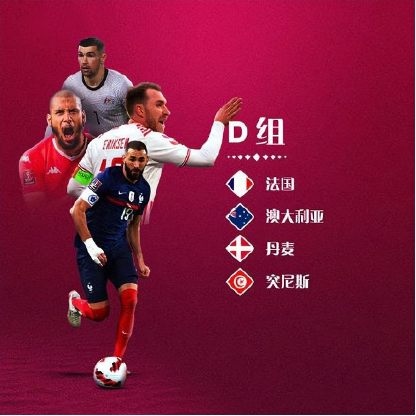 上届世界杯冠军高卢雄鸡法国队依然是本届世界杯的大热门,法国队人才济济,有以姆巴佩为代表的年轻有为的一代,也有以本泽马为代表的经验丰富的老将,他们的目标是小组第一。上届世界杯就与法国同组的丹麦队,实力强大,在世预赛一度8战全胜0失球晋级世界杯。法国、丹麦签运实属不错,突尼斯和澳大利亚在三档、四档实力都是吊车尾,无法造成威胁。预测法国小组第一,丹麦小组第二。