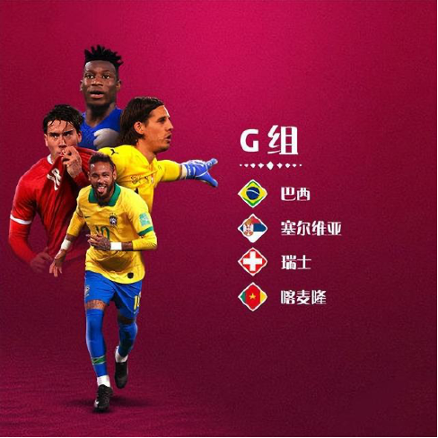 五星巴西是32强实力最强大的球队,也被博彩公司列为赔率最低的球队。其三线皆有强兵,几无弱点,在世预赛也展现出强大的统治力。但巴西的运气一般,再次碰到了2018年的老对手塞尔维亚和瑞士——这两支球队在欧洲世预赛一个力压葡萄牙出线,一个力压意大利出线,直接造成了葡萄牙、意大利只有一支球队晋级世界杯的局面,2支球队自然都不是省油的灯。非洲雄狮喀麦隆在世界杯的战绩相当好,上届非洲杯也展现了强大的实力。这支小组是平均实力最强的小组,巴西小组出线不成问题,另外三支都有机会。预测巴西小组第一,瑞士第二。