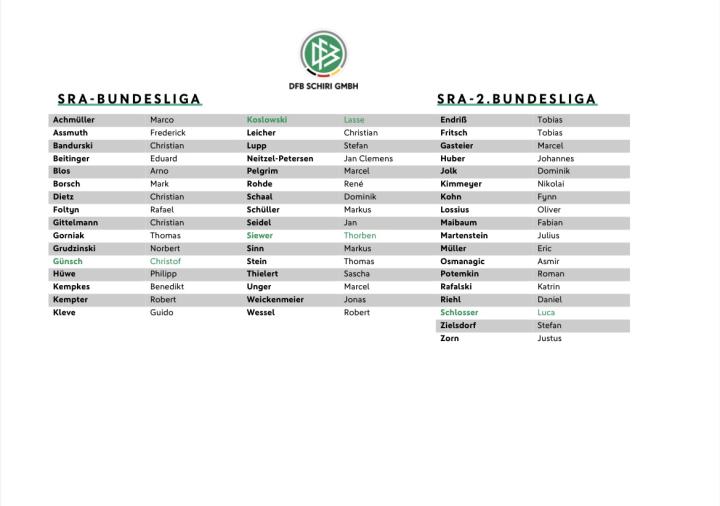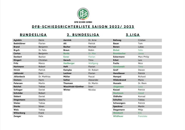 (图)下赛季(2022/2023)德国职业联赛裁判员名单(绿色为更新)