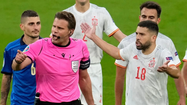 (图)布里希执法2020欧洲杯半决赛(意大利1:1西班牙)