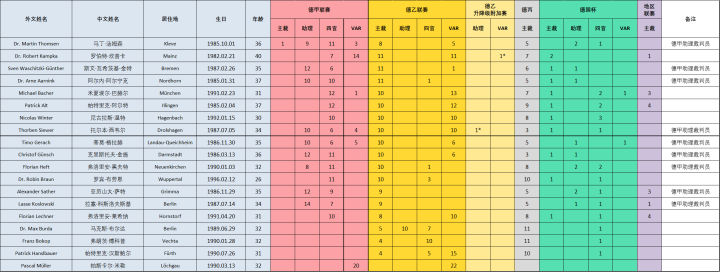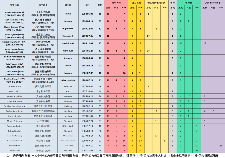 (图)2021/2022赛季德甲裁判员(按上表顺序)