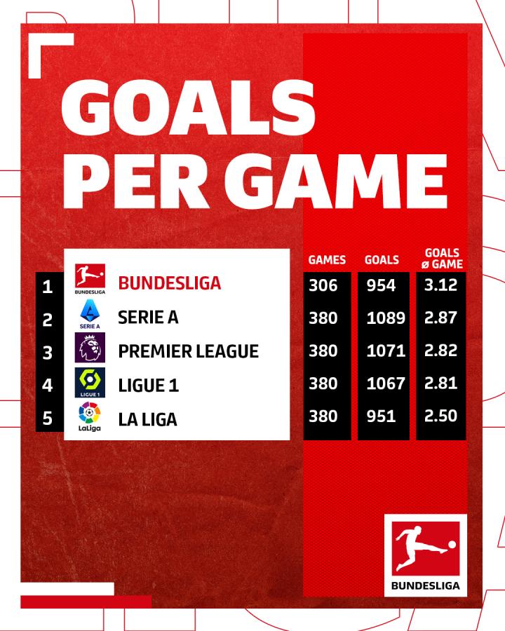 l 在2021/22赛季,德甲场均进球数为3.1个,是欧洲顶级联赛中最高的。因此,接连四个赛季里,德甲联赛场均进球超过3个。