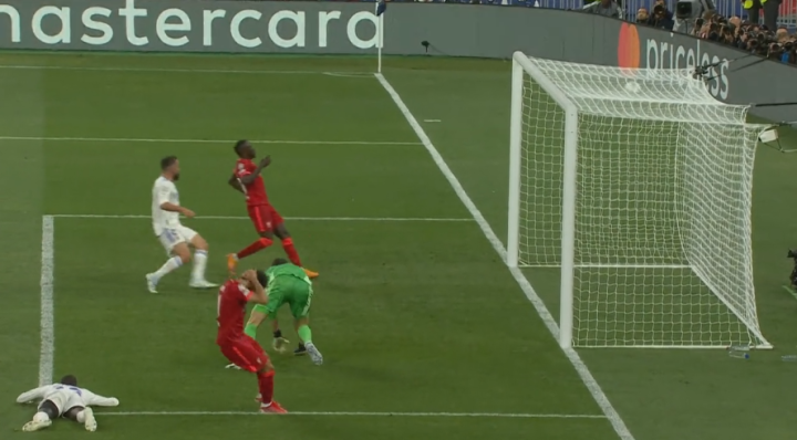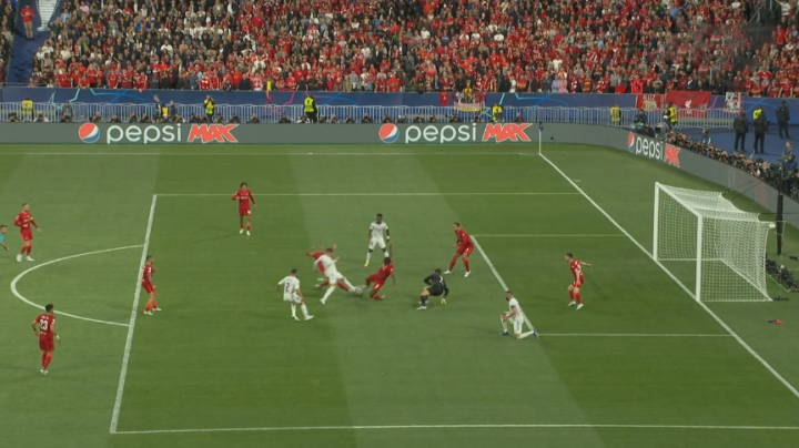 第42分钟,阿拉巴长传打身后,本泽马乱战中射进,被吹越位。