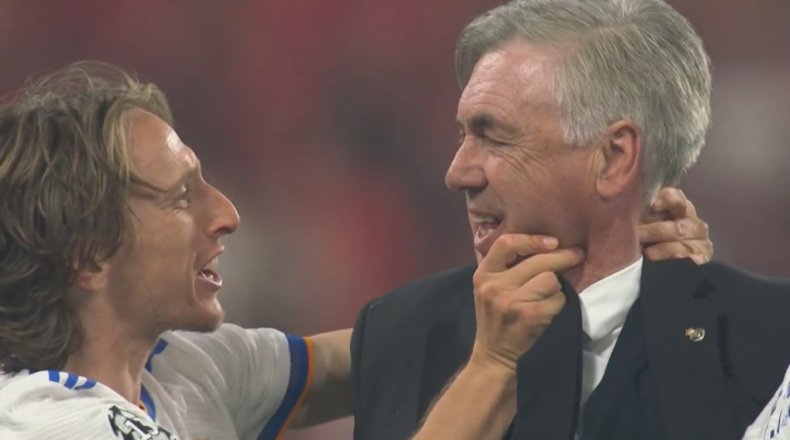 面对能把多数球队逼抢到窒息的利物浦,安切洛蒂为什么敢布置这么从容的踢法呢?因为银河战舰是双核驱动,他们有克罗斯、莫德里奇思考怎么“发牌”,他们不担心被抢断造成致命漏洞。