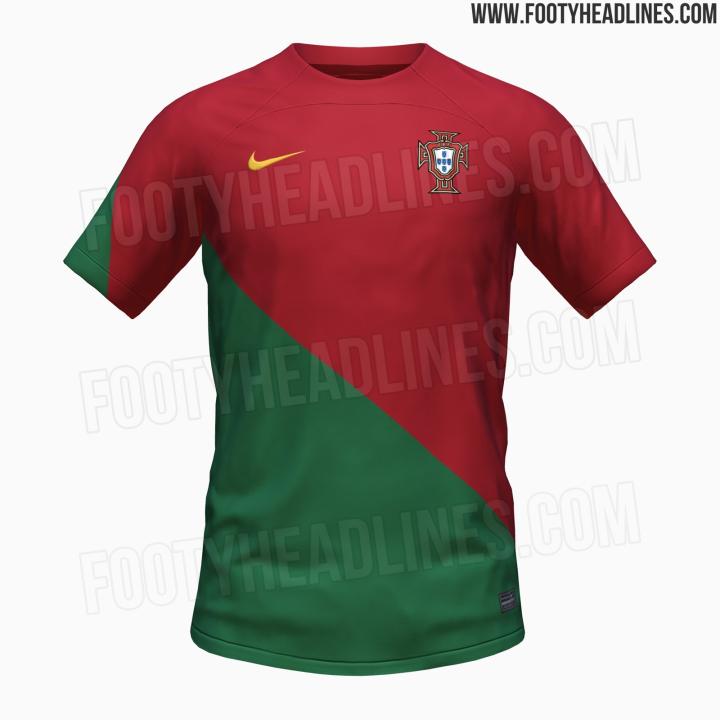 葡萄牙2022世界杯主场球衣采用红绿对角线对半设计,在葡萄牙国家队历史上属于首次。