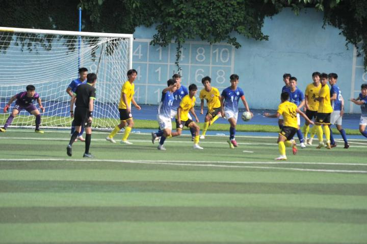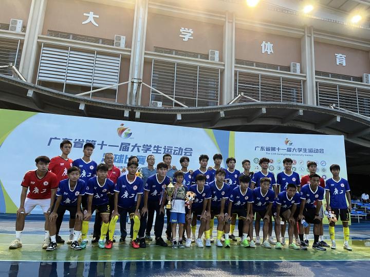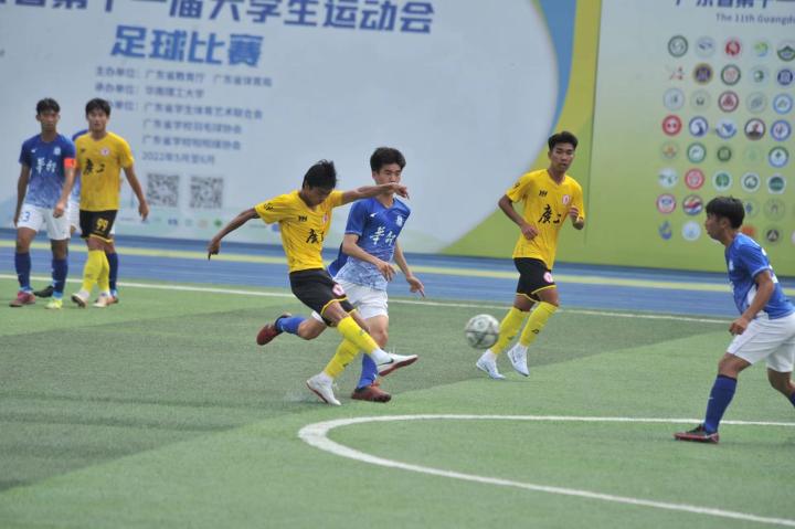华南理工大学西区的体育场,有人欢呼着,有人沉默着。这里刚刚上演了第十一届广东省大学生运动会足球项目男子乙B组的决赛,对决双方是华南师范大学和广东工业大学,上半场双方没有进球。在下半场的一次角球机会中,12号曾展辉头球造成华师手球犯规,广工获得点球机会,7号陈均晗操刀主罚命中,一蹴而就,1:0领先。但在不久后,广工2号陈锦鸿犯规,两黄变一红下场,广工场上少打一人,这对广工来说是一记晴天霹雳。
