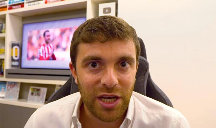 (罗马诺身后屏幕上所展示的球员,每天都会更换,换成当日转会话题中的焦点球员。)