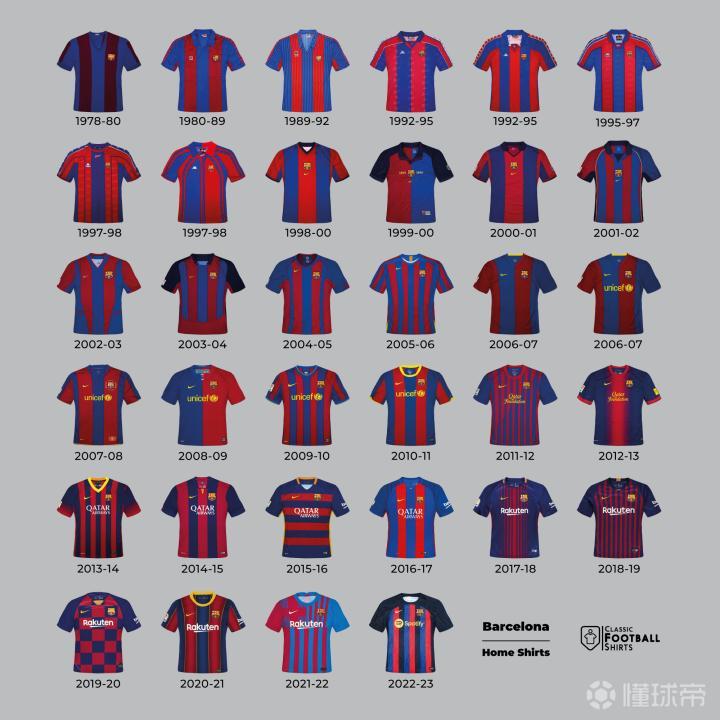 1978 年以来巴塞罗那俱乐部全部主场球衣,哪件...