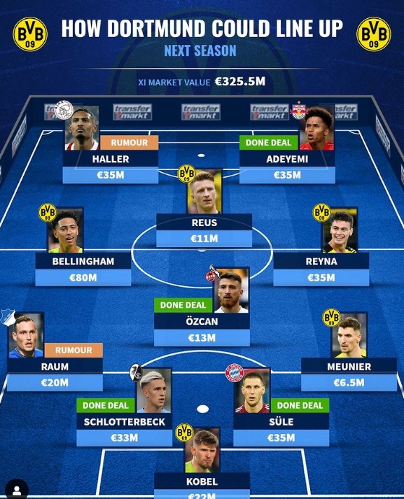 能争冠吗?德转预计多特阵容:阿莱和阿德耶米领衔进攻线骆驼飞鸟鱼刺 @懂球帝2022-06-21 19:45今夏目前为止多特蒙德已经签下了聚勒、施洛特贝克、厄兹詹和阿德耶米等多名新援,德国媒体Sport1和《鲁尔新闻报》的消息称,多特蒙德接近签下阿贾克斯中锋阿莱。德国知名足球数据网站“转会市场”预计了多特蒙德新赛季的阵容,这套阵容能与拜仁争冠吗?“转会市场”预计多特蒙德新赛季阵容:门将:科贝尔后卫:默尼耶、聚勒、施洛特贝克、劳姆中场:雷纳、厄兹詹。罗伊斯、贝林厄姆前场:阿德耶米,阿莱展开更多