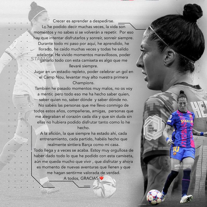北京时间6月22日,巴萨女足的埃尔莫索在个人社交平台上发布告别信,宣布自己将离开巴萨。
