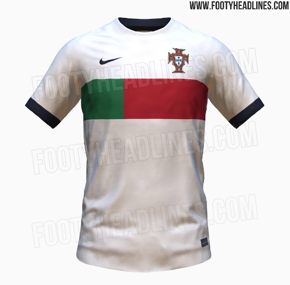 葡萄牙2022世界杯客场球衣曝光,灰白底+红绿经典配色迷你庫珀 @懂球帝2022-06-22 14:06北京时间6月22日,知名球衣信息网站FOOTY HEADLINES曝光了葡萄牙2022年世界杯客场球衣。耐克为参加2022年卡塔尔世界杯的葡萄牙国家队带来了清新与经典的客场球衣搭配组合,灰白色为底色,胸前采用绿红拼色块的设计。据悉,这是基于马竞、利物浦22-23赛季球衣相同的模板进行设计。此外,这款客场球衣的后领及袖口部分搭配了些许深蓝色的设计,预计这款客场球衣于2022年8月或9月推出。展开更多
