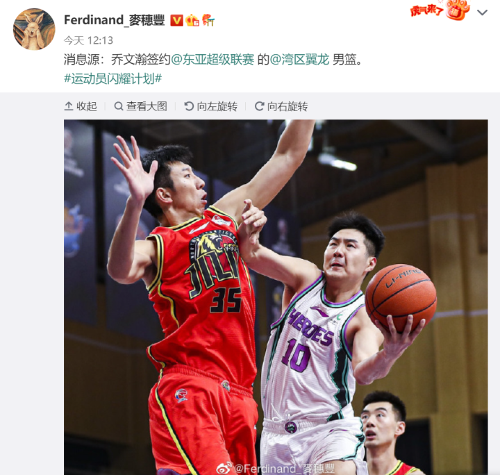 此前,这支球队官宣了总经理——前广厦男篮的总经理刘全胜,然后找来了澳大利亚男篮主帅戈尔担任主教练。之前,国内篮球记者麦穗丰已经爆料,表示上赛季效力于澳洲NBL联赛的刘传兴会加盟湾区翼龙队。今天,麦穗丰又透露,上赛季在山东队效力的前锋乔文瀚也会加盟湾区翼龙队。