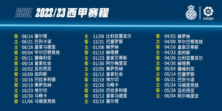 新赛季西班牙人西甲赛程完整版。点击保存不迷路~