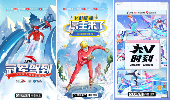 2022年北京冬奥会,抖音再次将谷爱凌、武大靖、徐梦桃、大杨扬、王濛等超百位冰雪健儿和冰雪名宿一网打尽,并通过《冠军驾到》、《濛主来了》、《大V时刻》等系列直播,与广大用户畅聊冰雪赛事,助力冰雪运动的广泛传播。