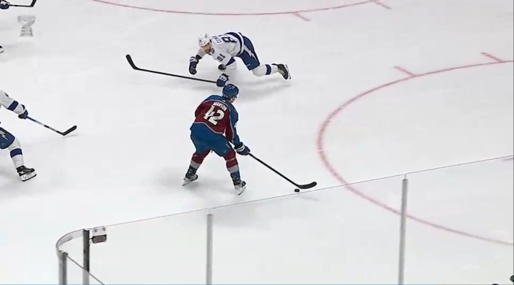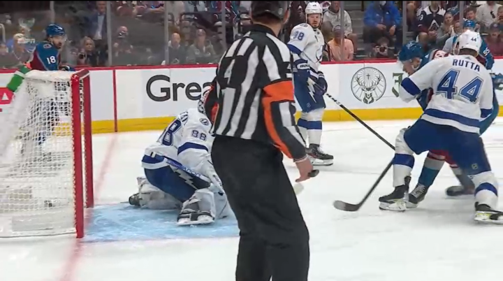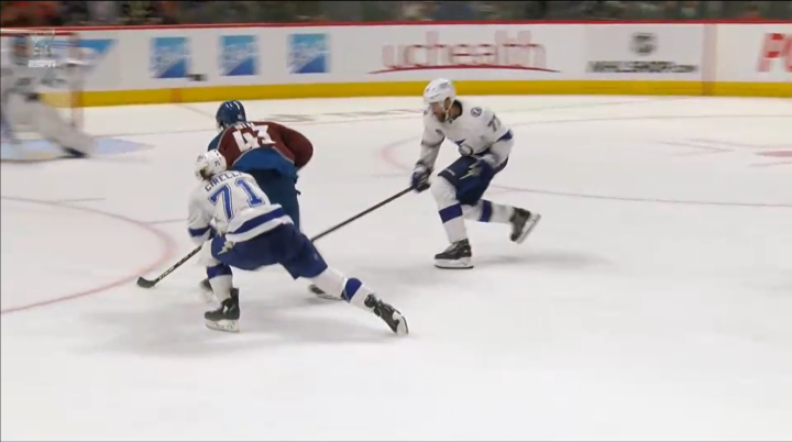 首节最后时刻,闪电10号科里·佩里和雪崩门将昆珀发生冲突后,两人接受了罚时(昆珀的罚时由纽虎克执行)。在2分钟的4打4后,雪崩总算停止了进攻的步伐。