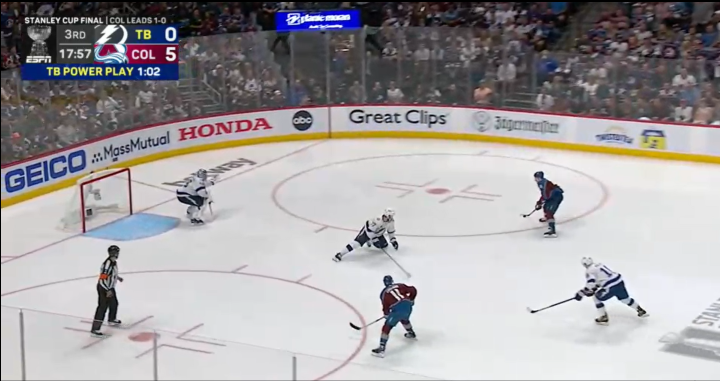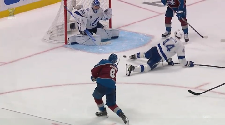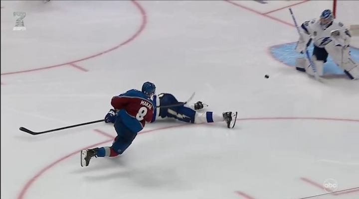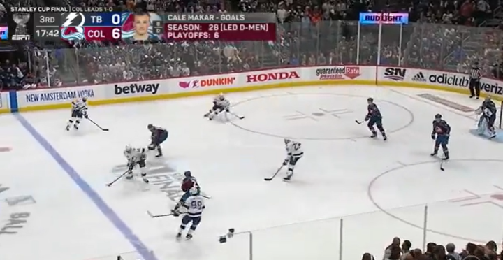 不过,这次犯规没给闪电带来福音,反而是雪崩抓住了一瞬间的机会。少防多进行到第59秒,雪崩的科格里亚诺在边板墙附近抢断,球来到了马卡尔杆下,马卡尔带球直入攻区,和科格里亚诺形成了2打1。马卡尔腕射远角破门,赫德曼封堵还是慢了一步。这是总决赛第一个少打多进球,雪崩把比分扩大为6:0!