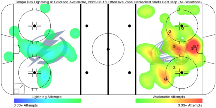雪崩在5打5时发挥出色:射门尝试15次,比闪电多7次。