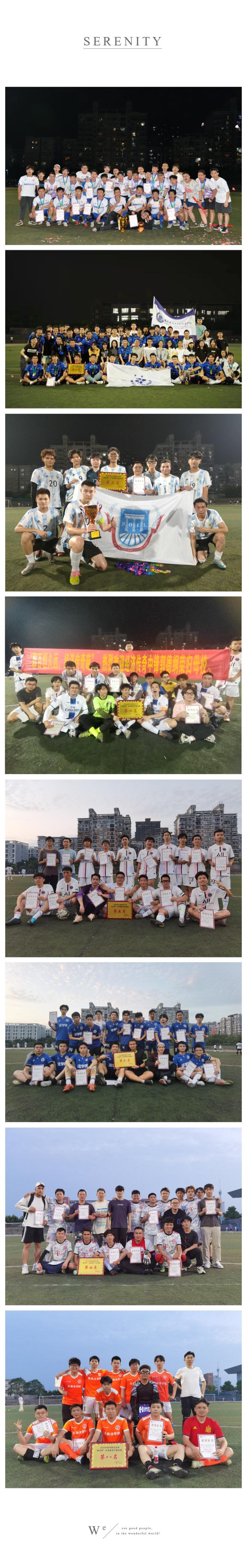 联赛——学校每年还会举办十一人制“西南政法大学甲级联赛”,简称“西甲”,赛程横跨整个学年,来自十三个学院的十二支球队捉对厮杀,联赛冠军每年都会有很大的悬念。