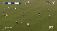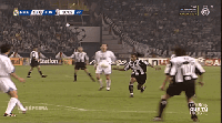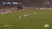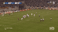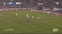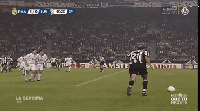 第85分钟,尤文图斯最后一次有威胁的攻门是由齐达内主罚的任意球,皮球划着弧线直奔球门远端,但最终还是没能旋进球门。