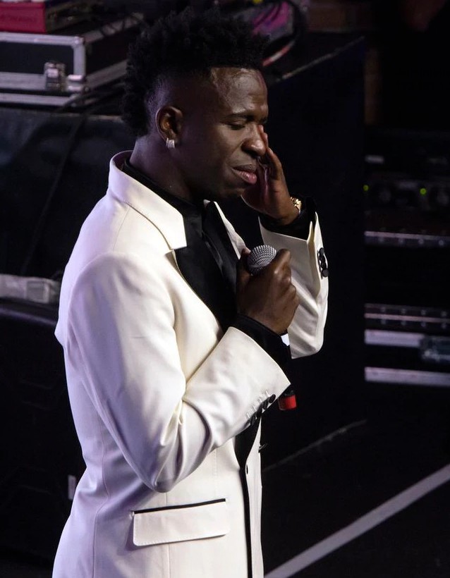 维尼修斯在慈善晚会上落泪:帮助家乡的人民,一直是我的梦想
