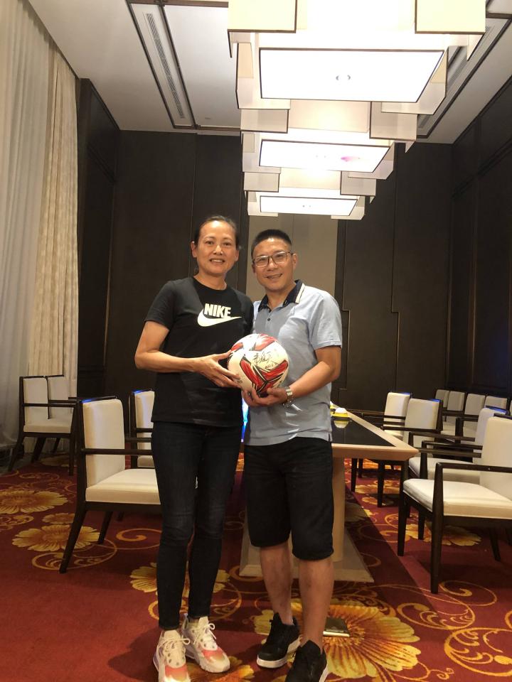 中国女足功勋球员韦海英莅临南宁讲学,为乡村学生赠签名足球