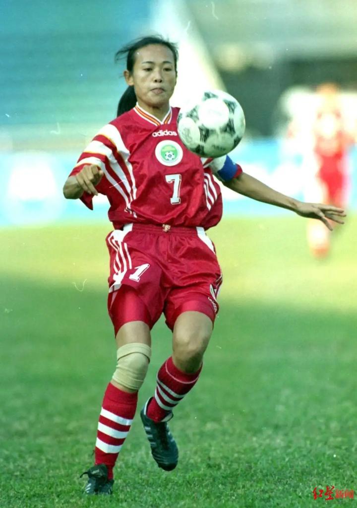 (1996年亚特兰大奥运会半决赛,中国女足对阵巴西女足,第82分钟,孙庆梅右边路传中,7号韦海英门前一脚端射将球送入巴西队大门,中国队顽强地将比分扳成2-2)