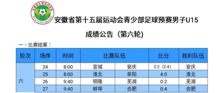 在上午八点进行的两场比赛中,安庆队要与宣城队争夺第七名,由于本次预赛前七名和东道主滁州队一起进入决赛阶段,所以第七名的争夺尤为关键。安庆队一度取得了两球的领先优势,不过宣城队没有放弃,连追两球将比分顽强扳平,比赛最后时刻安庆队错失单刀球,两队进入点球大战,最终在点球大战中安庆队4:2击败了宣城队,如愿拿到了决赛阶段的最后一张入场券,宣城队则遗憾的无缘决赛阶段比赛。