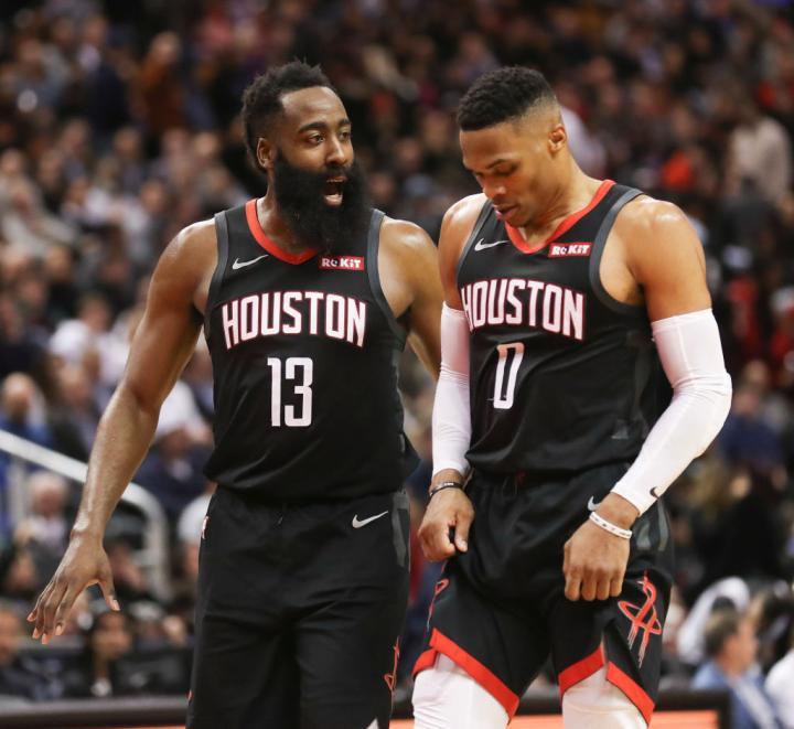 2020年休赛期,威少和哈登提出离队申请,前者被送至奇才,哈登则拖到2021年1月才终于被送至篮网。他甚至还在2020-21赛季为火箭出战8场。在篮网,哈登和杜兰特重逢,这也是他们自2012年分手后首次相聚。可惜,今年2月哈登再被送至76人,二人的重逢仅维持了1年。