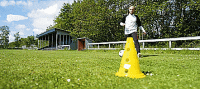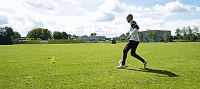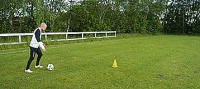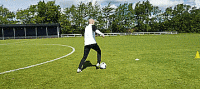 不管怎么说,这里的训练基本上就是我们在边路拿球,几次触球,做个身体假动作,然后我们爆发摆脱。