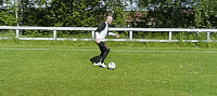 这点很重要,这能帮我们能过掉防守队员,基本的想法是让我们理解如何以合适的速度跑动,膝盖下降,将球近距离控在脚下。