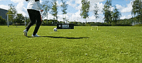 所以我们要做的是找一个防守队员,在身前放一个障碍栏,然后从几米外开始,我们要么把球向前滚,要么找个东西把球弹回来到我们和防守者的面前,然后我们要做的就是加速在后卫之前拿到球。
