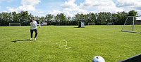这里的标志盘实际上并不重要,重要的是我们在练习的时候强迫自己做什么,因为如果我们只是慢悠悠的带球,然后绕过标志盘,这在比赛中不会有什么帮助,除非防守球员真的很糟糕。