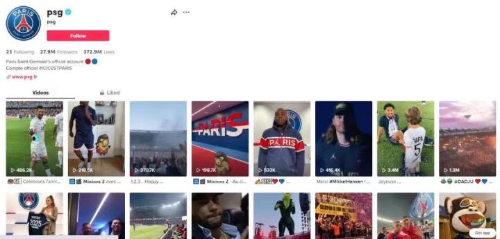 大巴黎在TikTok上有近2800万粉,超3亿点赞